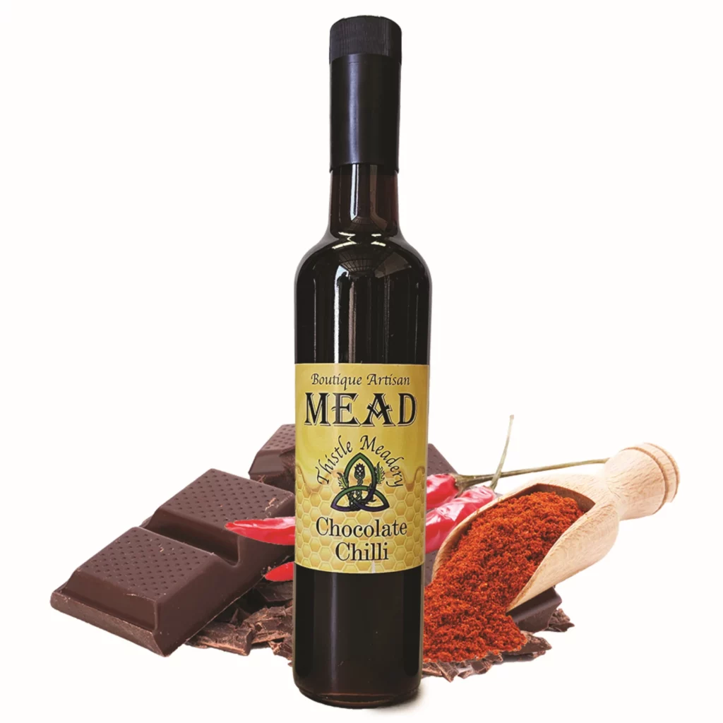 For those who enjoy bold and adventurous flavors, our Chocolate Chilli Honey Mead is a must-try. This mead combines the rich, velvety taste of chocolate with a spicy kick from carefully selected chillies. It’s a complex and indulgent beverage that’s perfect for sipping on a chilly evening.